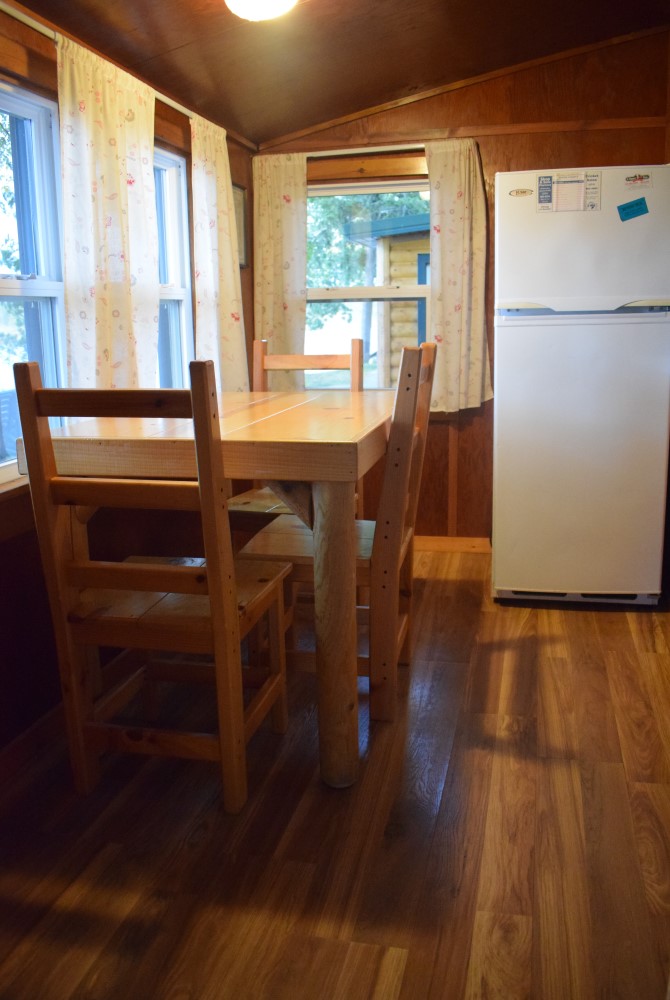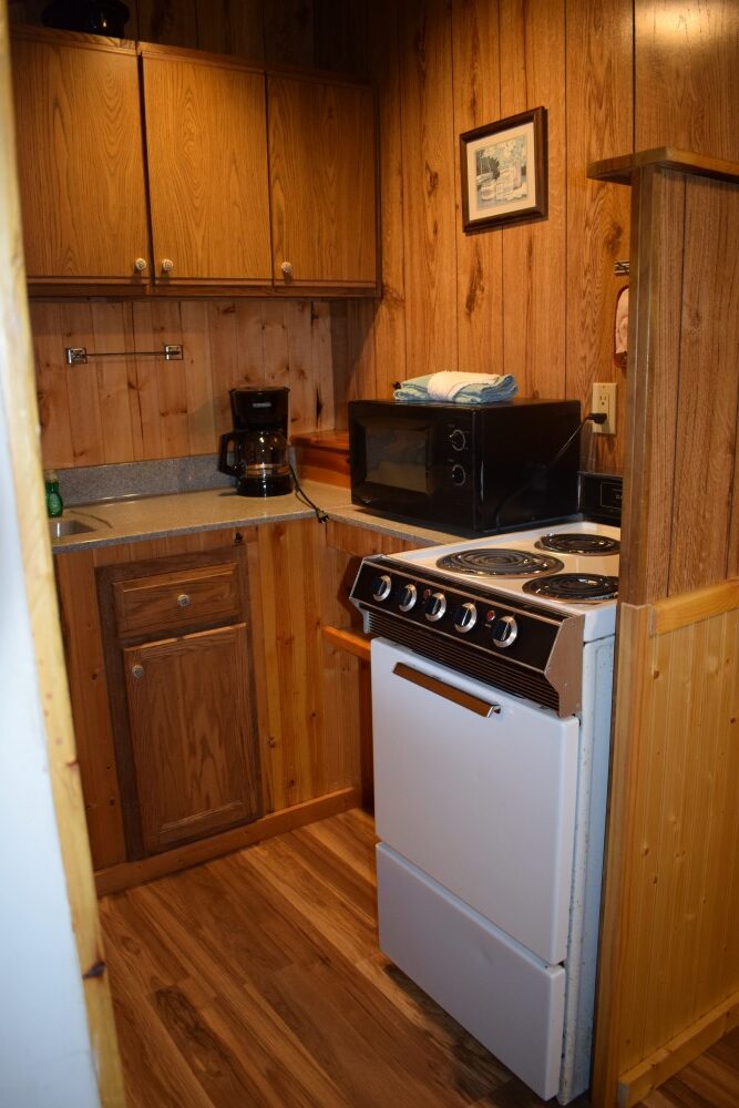 All cabins are comfortably furnished, blankets and pillows are provided, weekly guests should bring sheets and towels. Kitchens include fully equipped electric stove, refrigerator with freezer, microwave oven, coffee pot, toaster, dishes and cooking utensils.